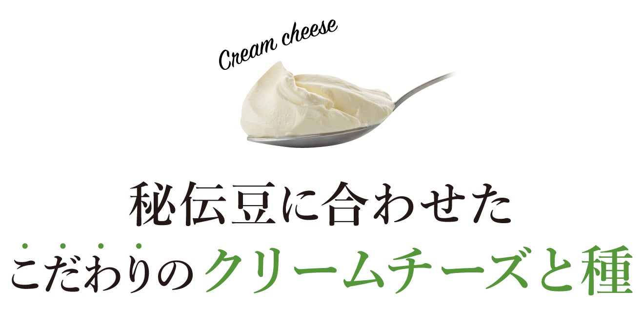 田産秘伝豆と北海道産クリームチーズ、そして老舗の種がまさしく三位一体になったからこそ生まれたのが、この「すず芽」。