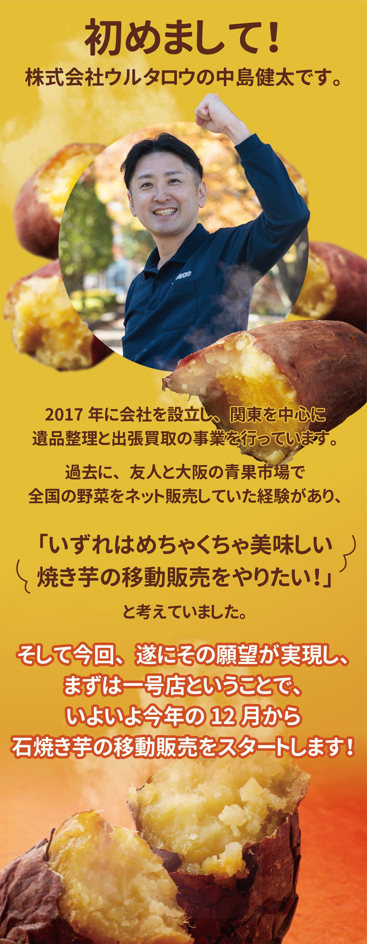 そのため、僕は今の人脈やチャンスを生かすための土台作りをしっかりとさせ、まずは来年以降に焼き芋事業を拡大していくための第一歩ということで、都内の住宅地から、石焼き芋屋の移動販売をスタートします。