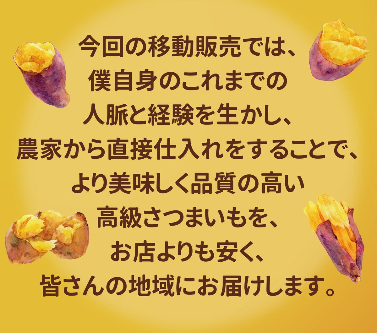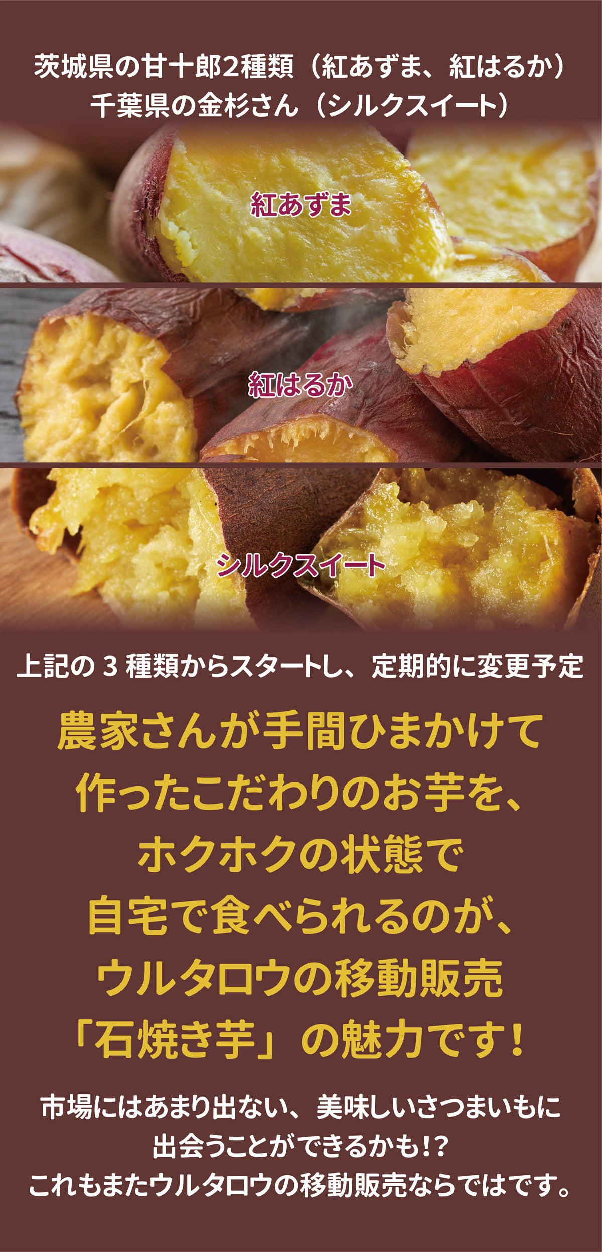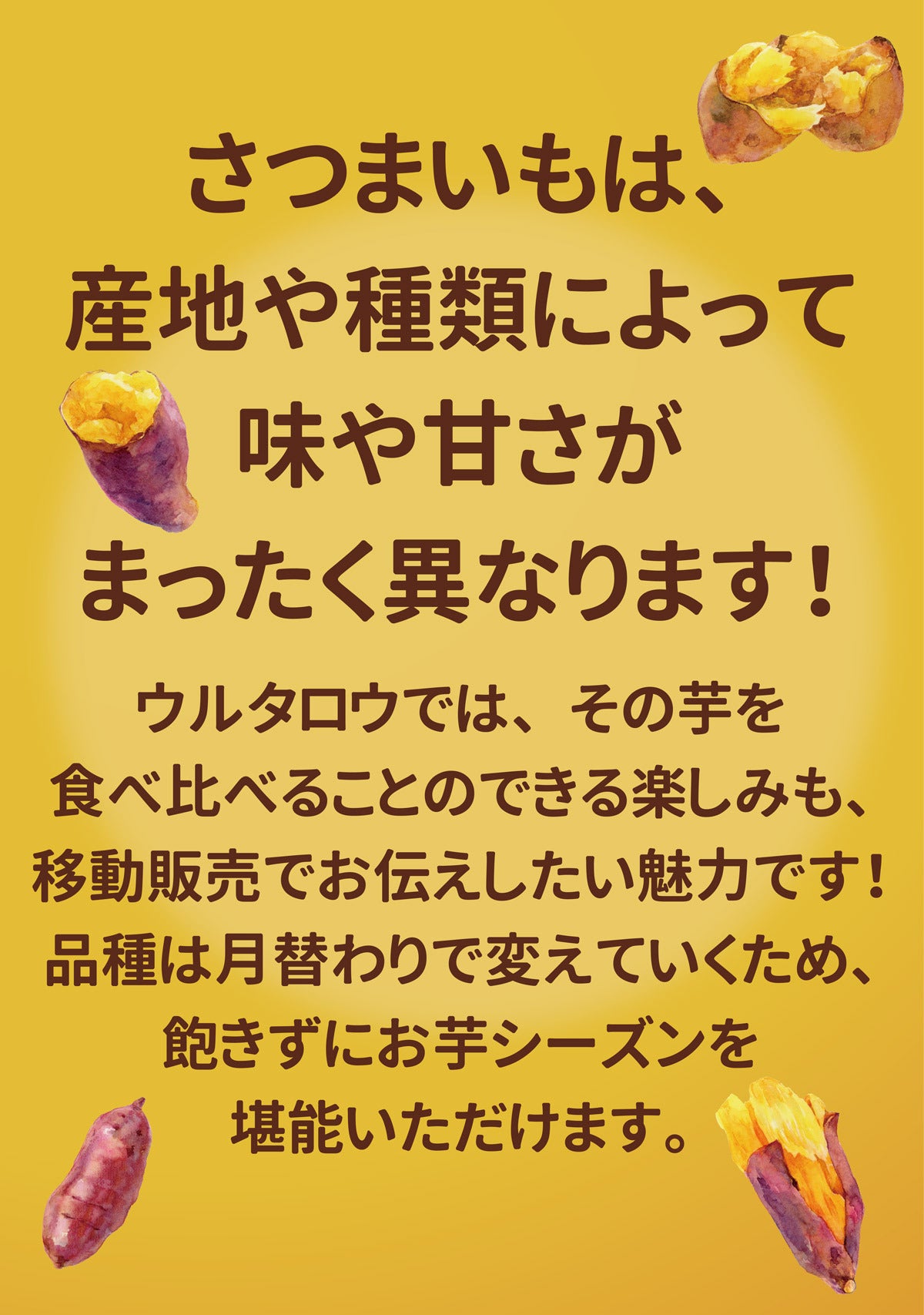 今回、ウルタロウが移動販売でお届けするのは、百貨店などにも卸されている、選りすぐりのこだわりさつまいもです。