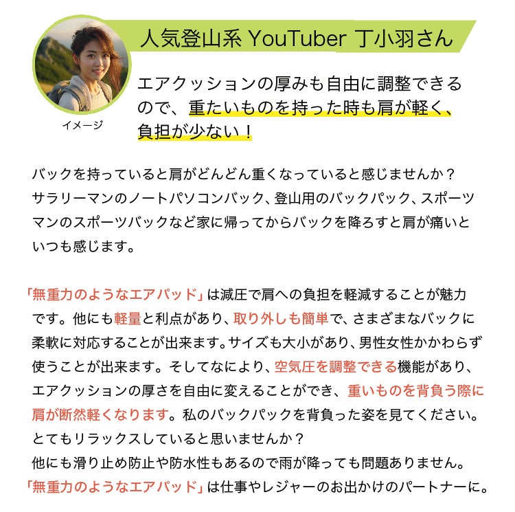 2024/03/04 15:18昨年、日本で初めて販売された荷物が軽く感じる無重力のエアパッド【Air-on】が2024年4月11日10時~一般販売を開始する事が決定いたしました!!!クラファンで買い逃した方は、是非ともこの機会にお買い求めください!今後の情報はX(旧Twitter):https://twitter.com/aironjpofficialもしくはInstagram :https://www.instagram.com/air_on.jp/にて配信していきますのでフォロー宜しくお願い致します。 もっと見る全ての商品の配送が完了しました。