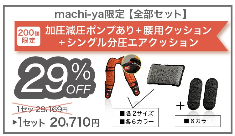 ショルダーエアクッション(ポンプ付)+腰用クッション+シングル分圧クッション】