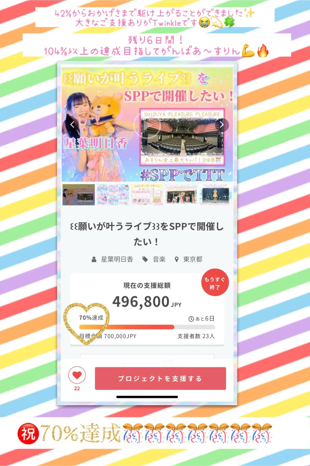 104%以上達成したときに、あすりんの大好きで大切な人たちに勇気を届けられますように!!がんばあ~すりん!
