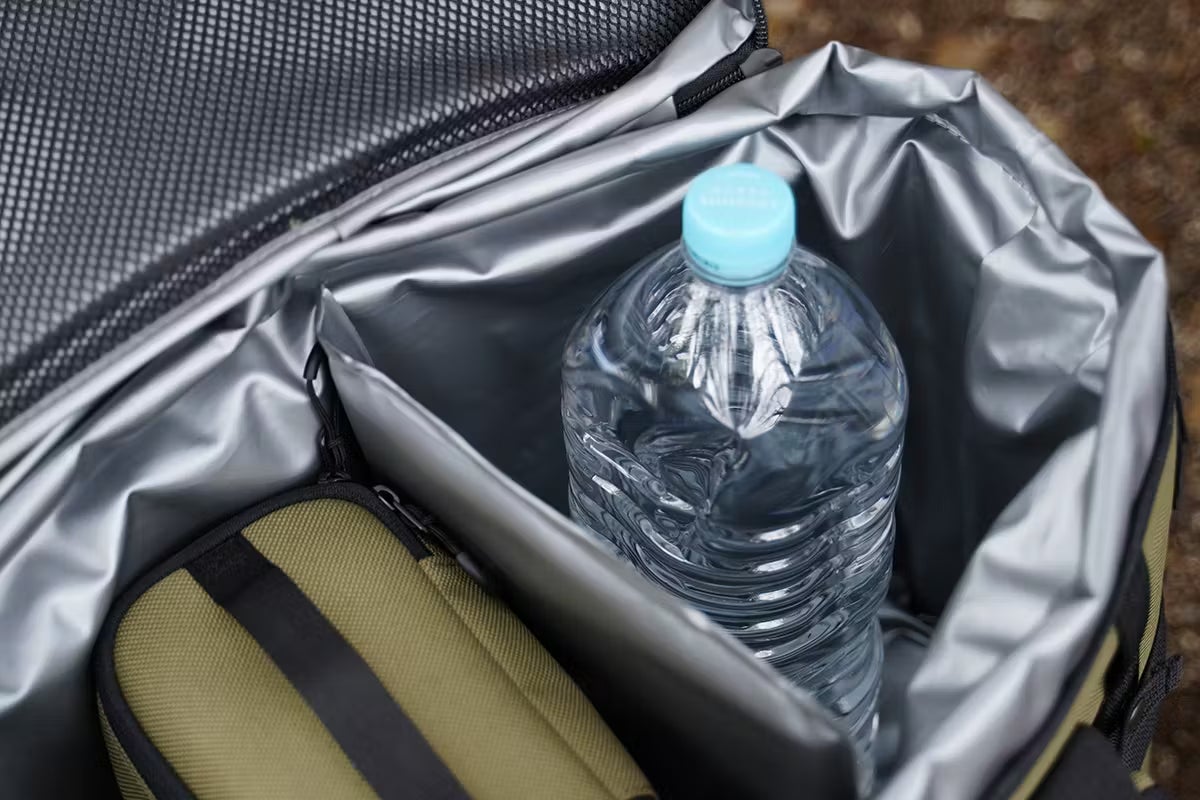 しかも、2リットルのペットボトルが縦に入り、自転車キャンパーやバックパッカーにも優しい3WAY(リュック・ショルダー・ハンド)仕様に!