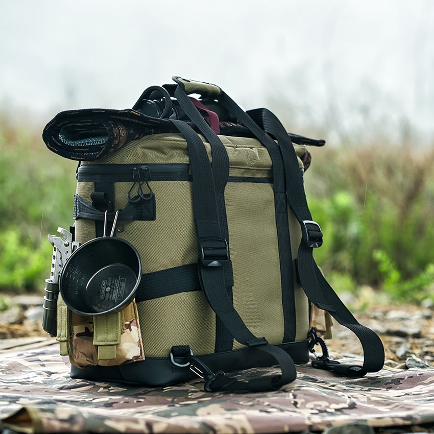 駐車場が遠いサイトや無人島でのキャンプ、登山での食材運びなどにも大活躍!ショルダーベルトを2本使用することで、リュックとして使えます。