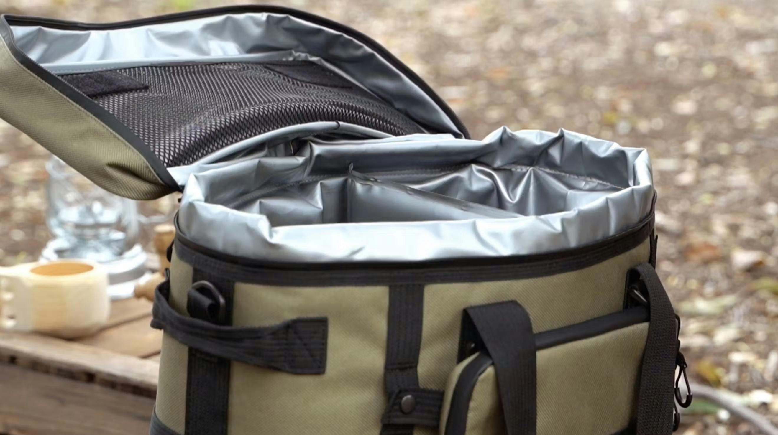 クーラバックとお揃い生地のメスティンケースも付属します。内側はアルミシート素材で、炊飯時の蒸らしや保温に最適です。