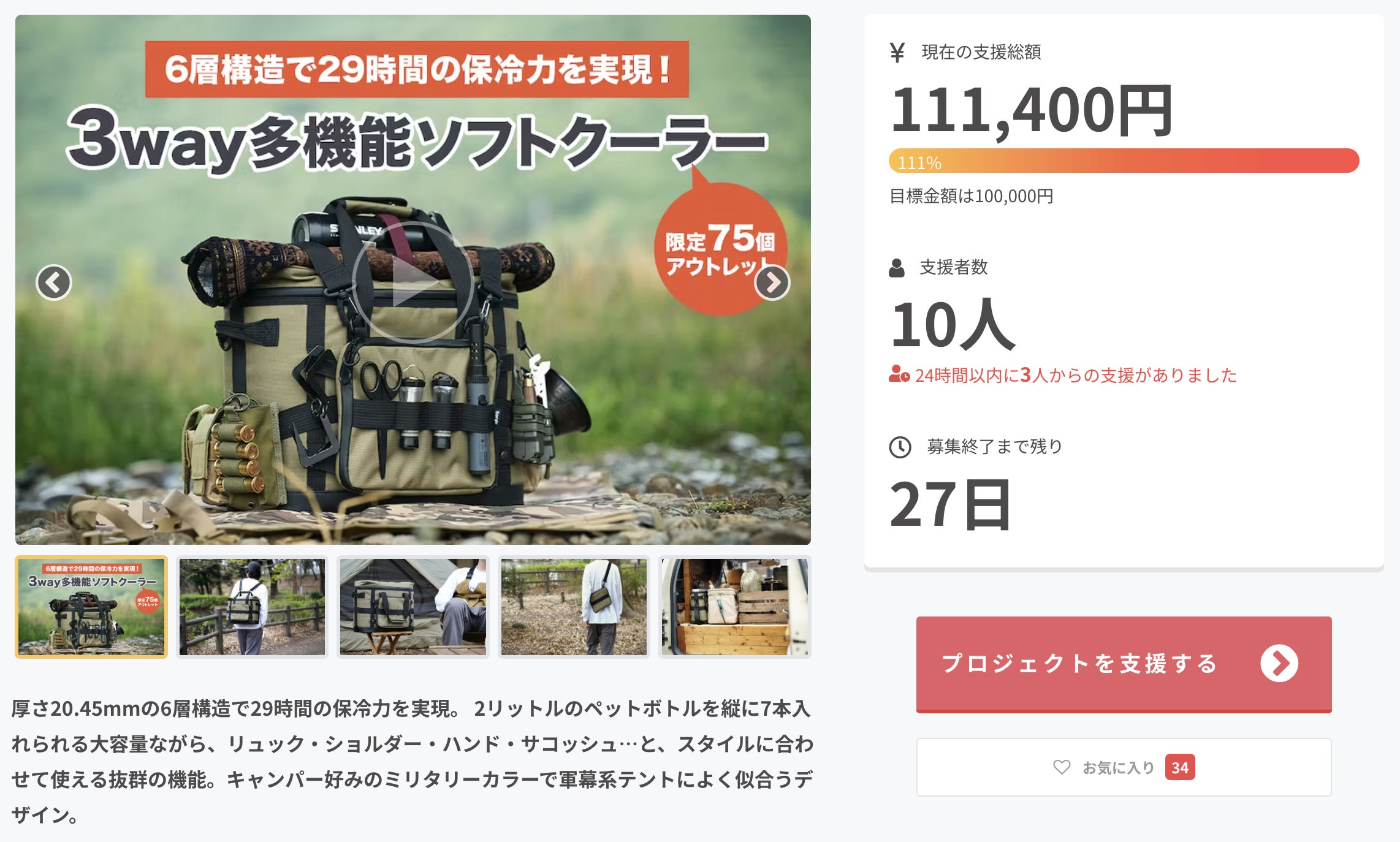 こんにちは。株式会社いちばんぼしの浅山佳映子です。トレンド祭り限定【アウトレット】6層構造の3WAY、多機能ソフトクーラーバッグのプロジェクトが本日で終了となります。今後、ゾルゲクーラーの販売はございませんので、このチャンスをお見逃しなく!詳細はこちら→https://camp-fire.jp/projects/view/711657
