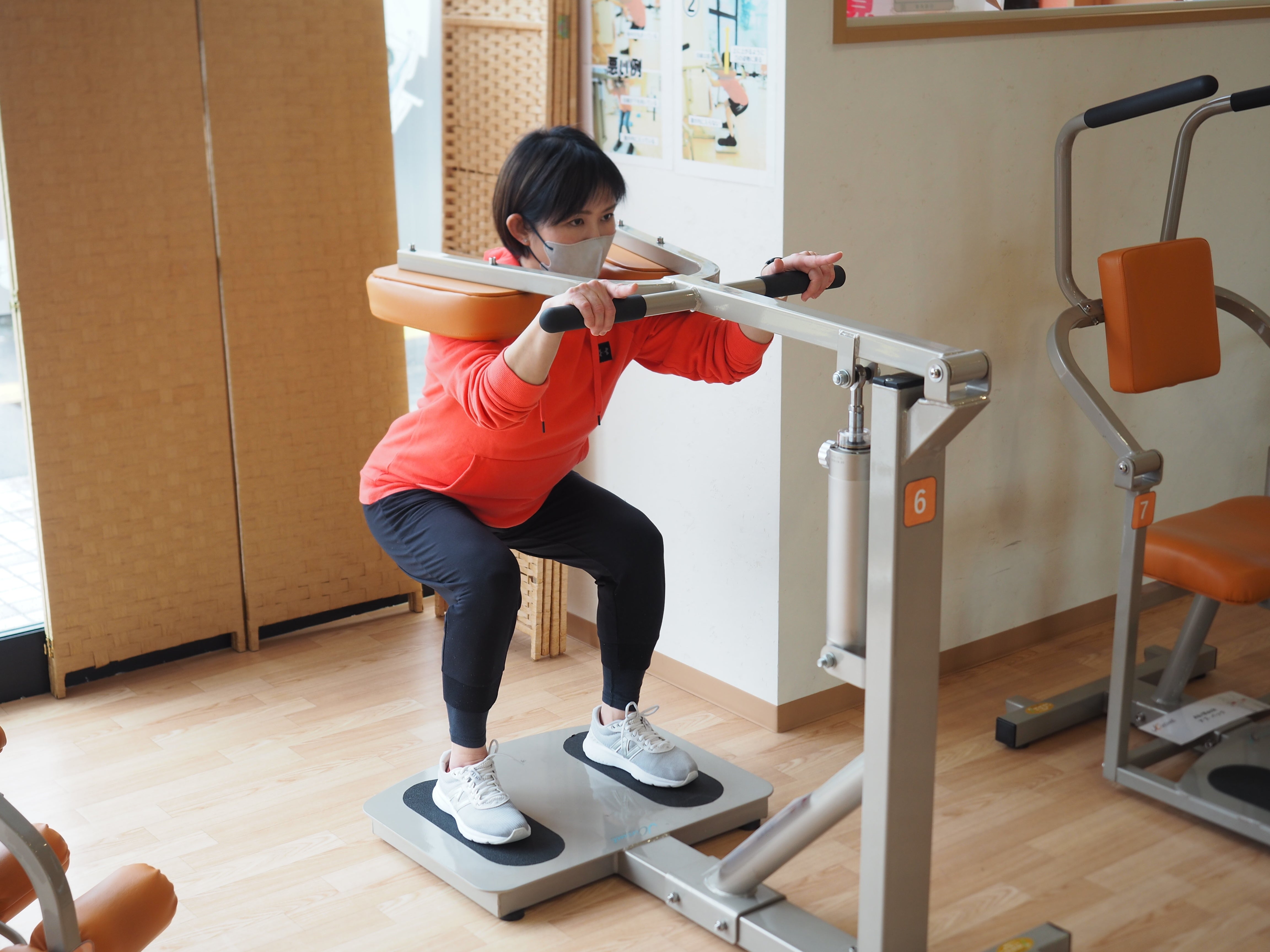 殆どのエクササイズ(サーキットエクササイズを含め)は握るという握力運動をしません。マシンを使う時もバーを軽く生卵を持つぐらい優しく持ちなさいと指導します。