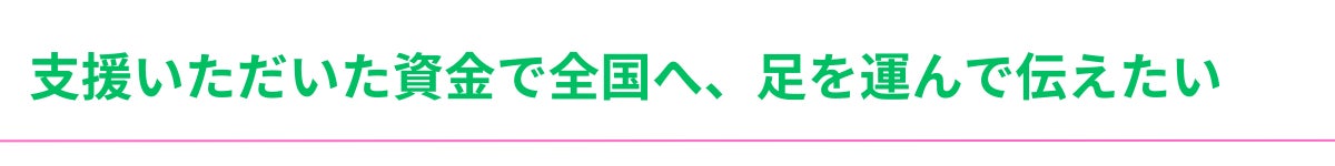 また目標額を上回るご支援をいただいた際は、北海道から沖縄まで各地に足を運ぶつもりです!