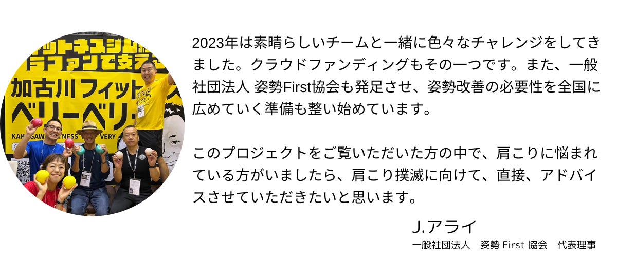 肩こりをゼロにするために必要なのは、肩こりの原因である「姿勢」を改善することでもあります。ラヴァボールを使ってマッサージすることが肩こり撲滅ではなく、ボールを使って、正しい姿勢を手に入れていただきたいのです!