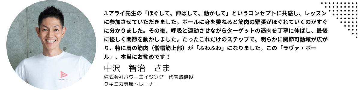 現在は肩こりゼロキャンペーンという、認定指導者のいる施設でラヴァボールのレッスンに参加できるようになっています。