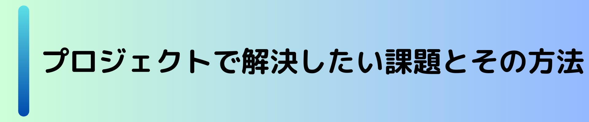 先ほど課題を挙げましたが、当プロジェクトでは挙げたすべての課題を解決したいと考えております。