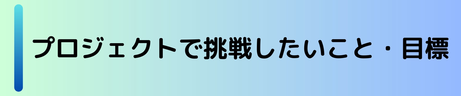 当プロジェクトで挑戦したいことは、大きく3つあります。これは目標でもあり、挑戦したいことでもあります。