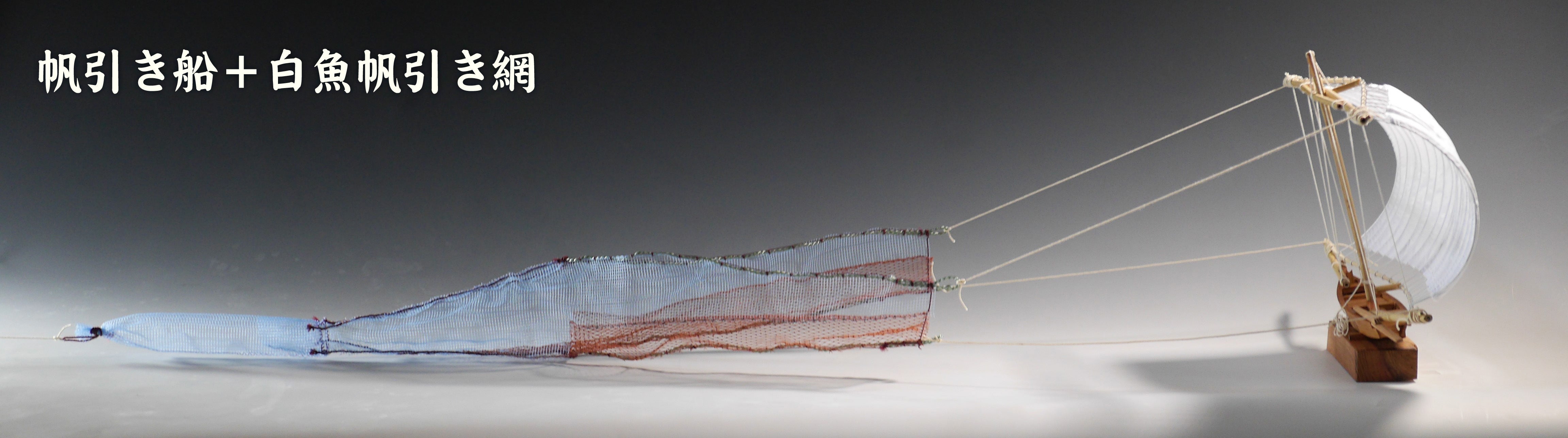 ●110,000円 【20セット限定】帆引き船手作り模型(製造者サイン入り・ガラスケース無し)+ 網大工髙橋吉勝謹製(本物の網を素材にした)帆引き網模型セット