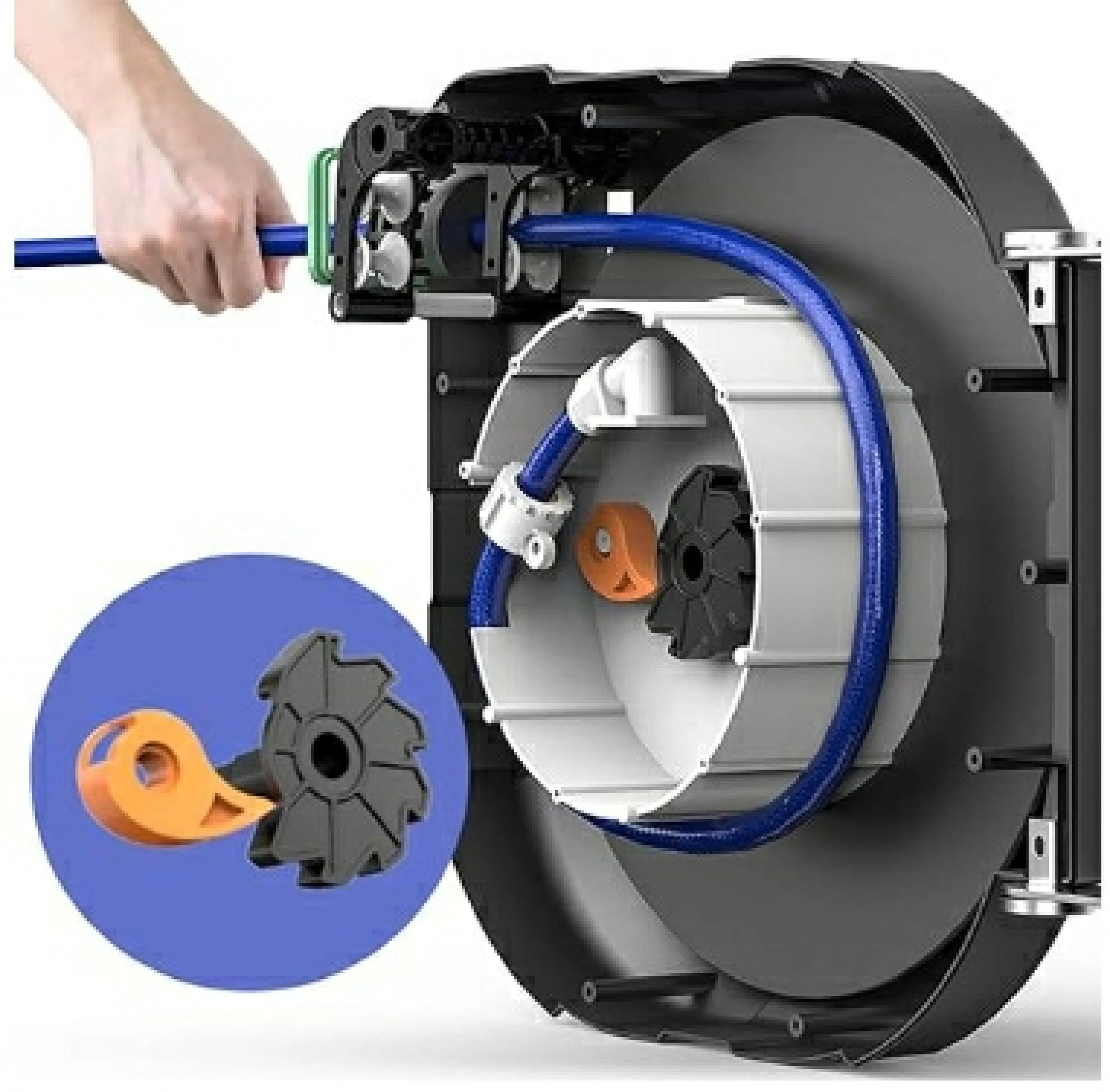移動ホース自動巻取りで手間いらず