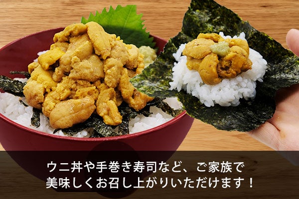 ご飯の上に贅沢白うにをのせて、ワサビ醤油と海苔をかけて食べみてください!
