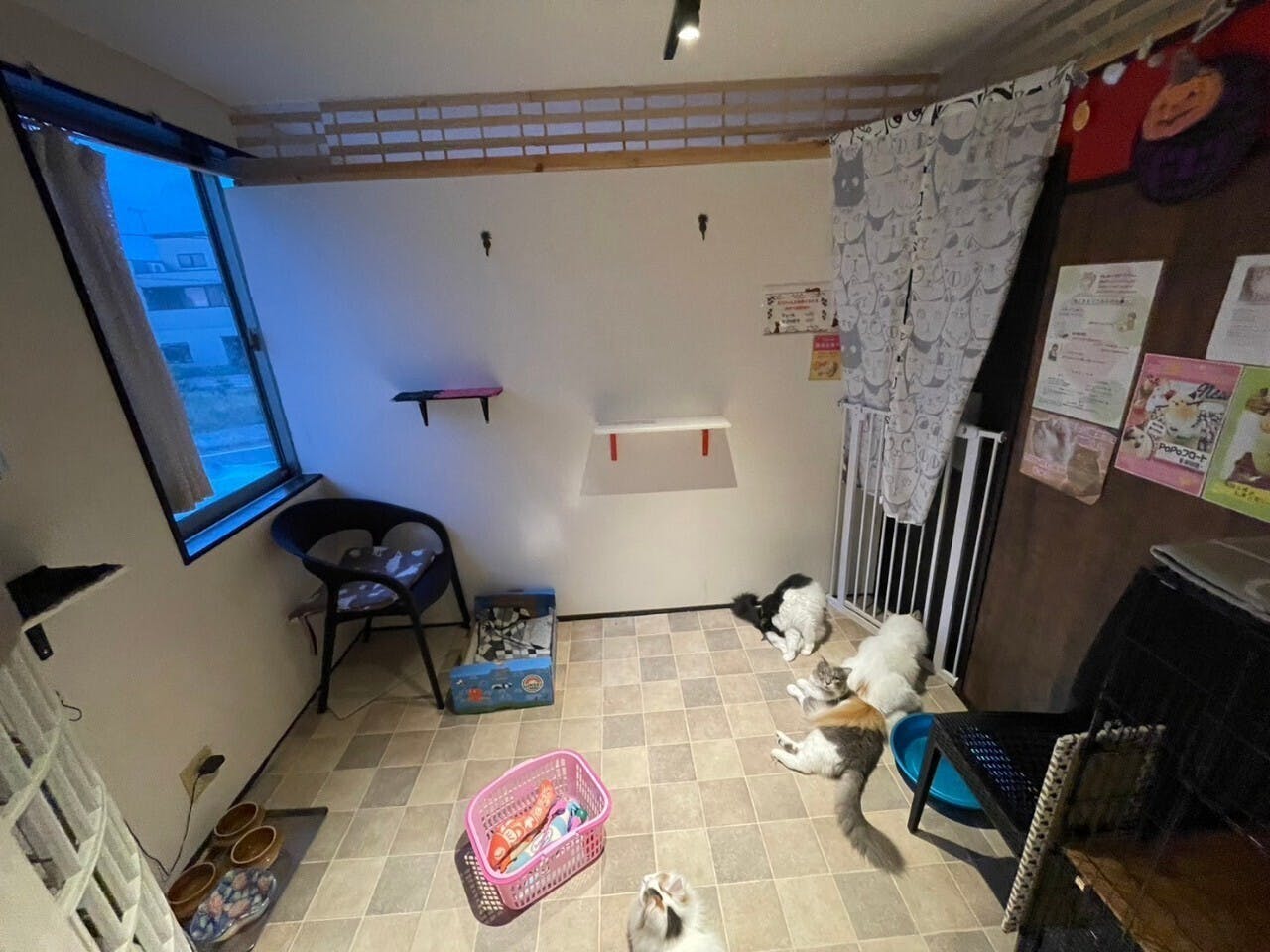 店内は受付&飲食スペースと猫ちゃん部屋が仕切られていますが、ガラスの向こうの猫ちゃんの様子が見えるので飲食しながらでも楽しめます。