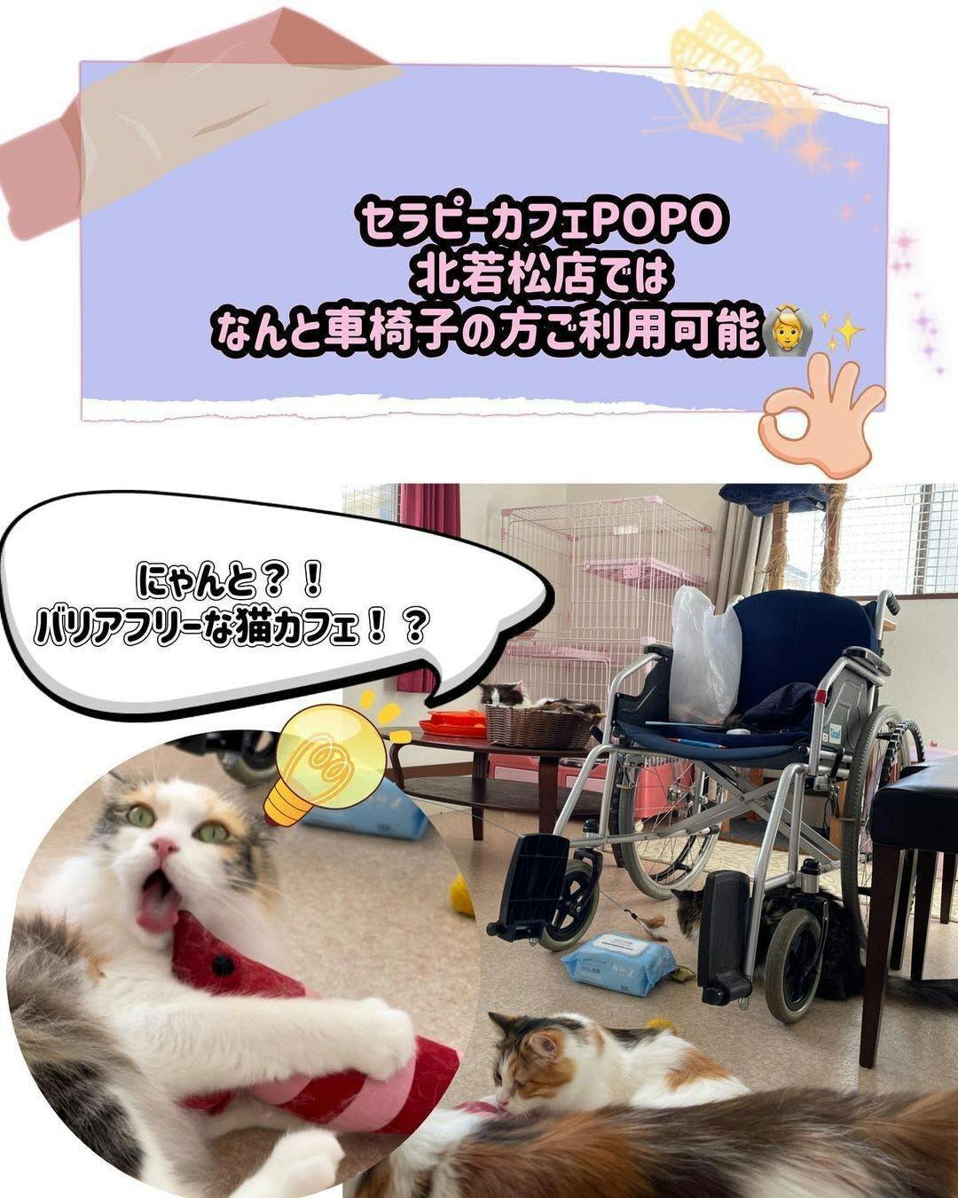 実際に現店舗をご利用して頂いた方にも楽しんで頂けてますが、猫スタッフのいるお部屋がほぼ2階にあるため、ご利用を諦めてしまう方もおります。