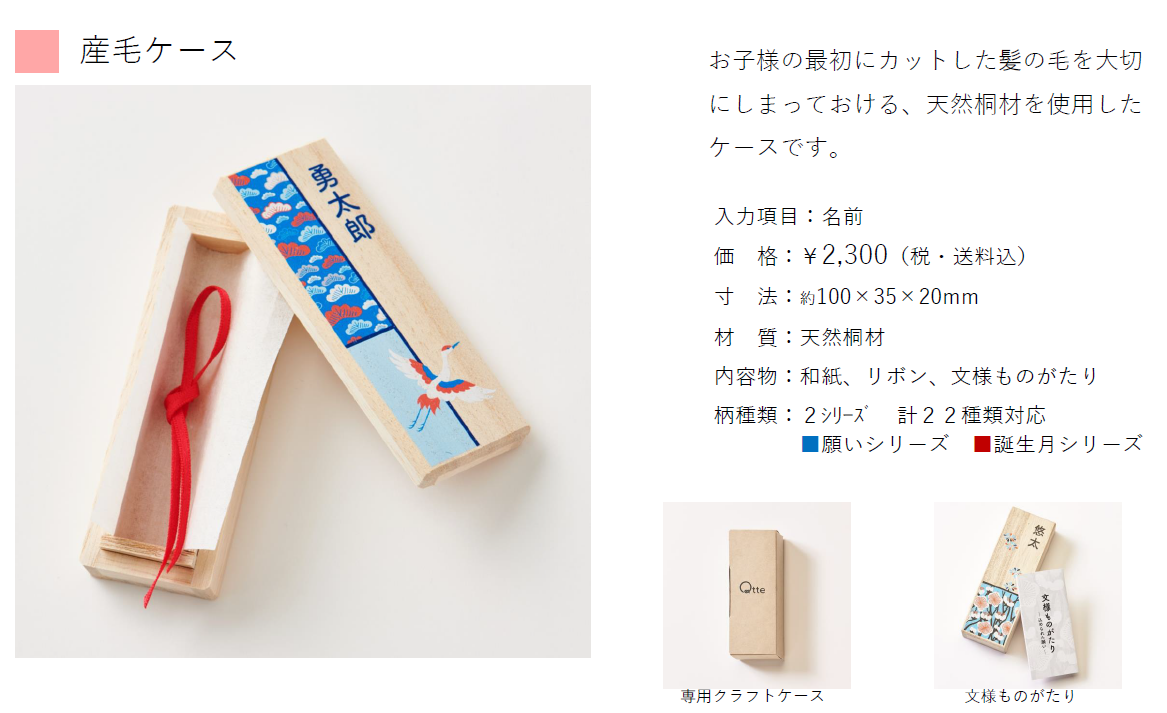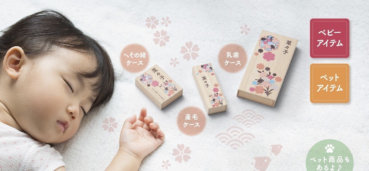 そんなかけがえのない幼い時の思い出の品を大事にしまっておける桐箱シリーズです。