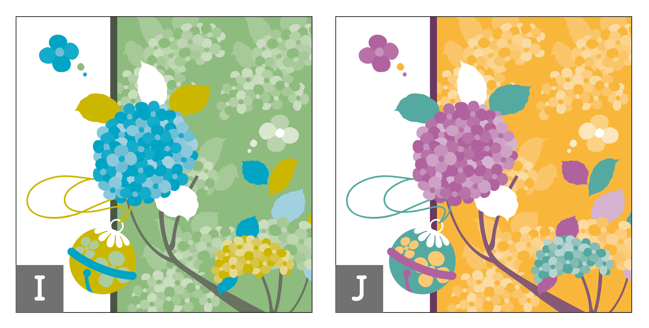 I:紫陽花・鈴(緑) J:紫陽花・鈴(黄)