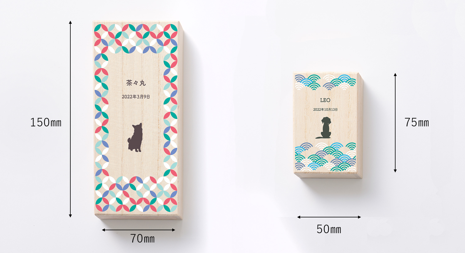 ■大きさは用途にあわせて2種類 全てお名前と年月日を入れられます。