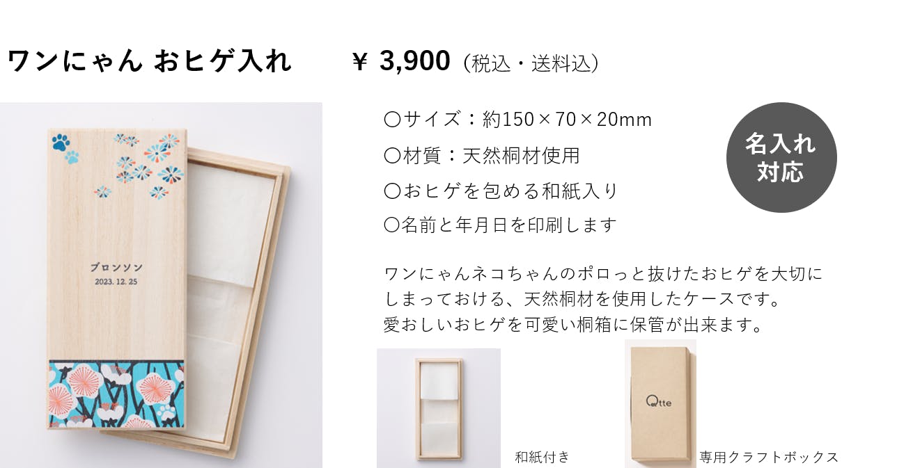 そんな大切なうちの子の思い出の品を大事にしまって飾っておける桐箱シリーズです