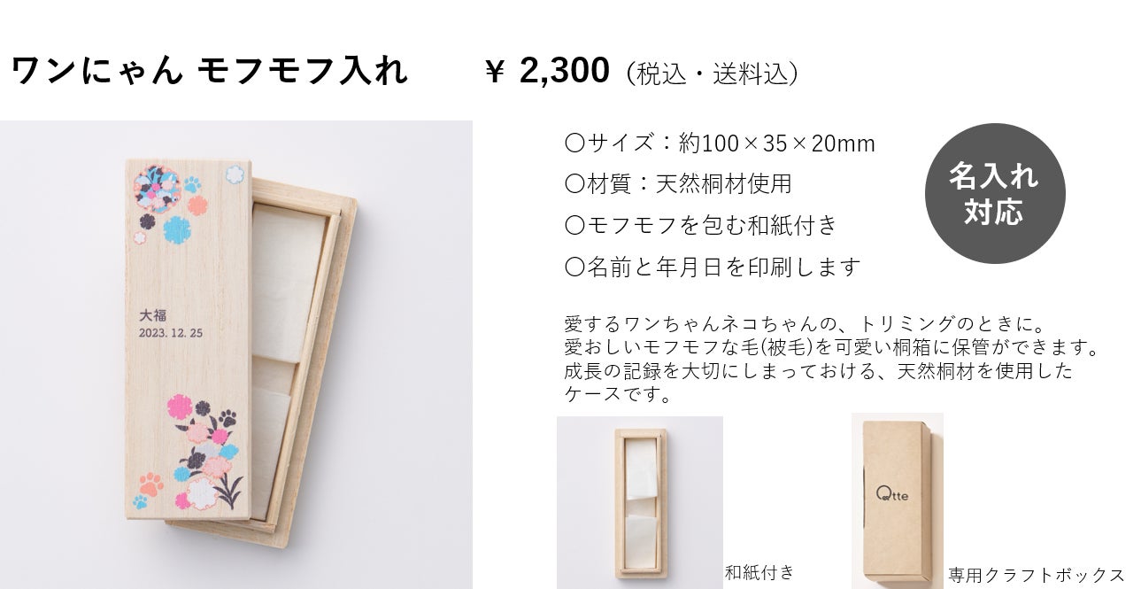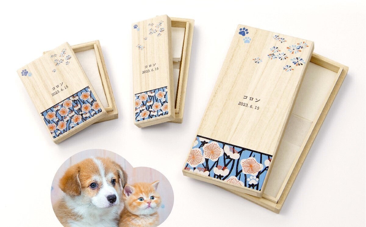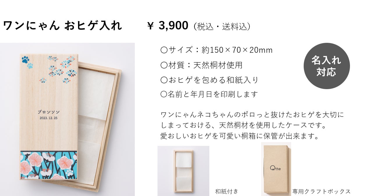 そんな大切なうちの子の思い出の品を大事にしまって飾っておける桐箱シリーズです