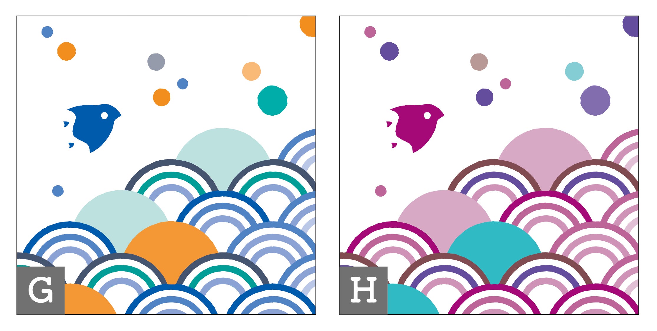 G:千鳥・青海波(水色) H:千鳥・青海波(ピンク)