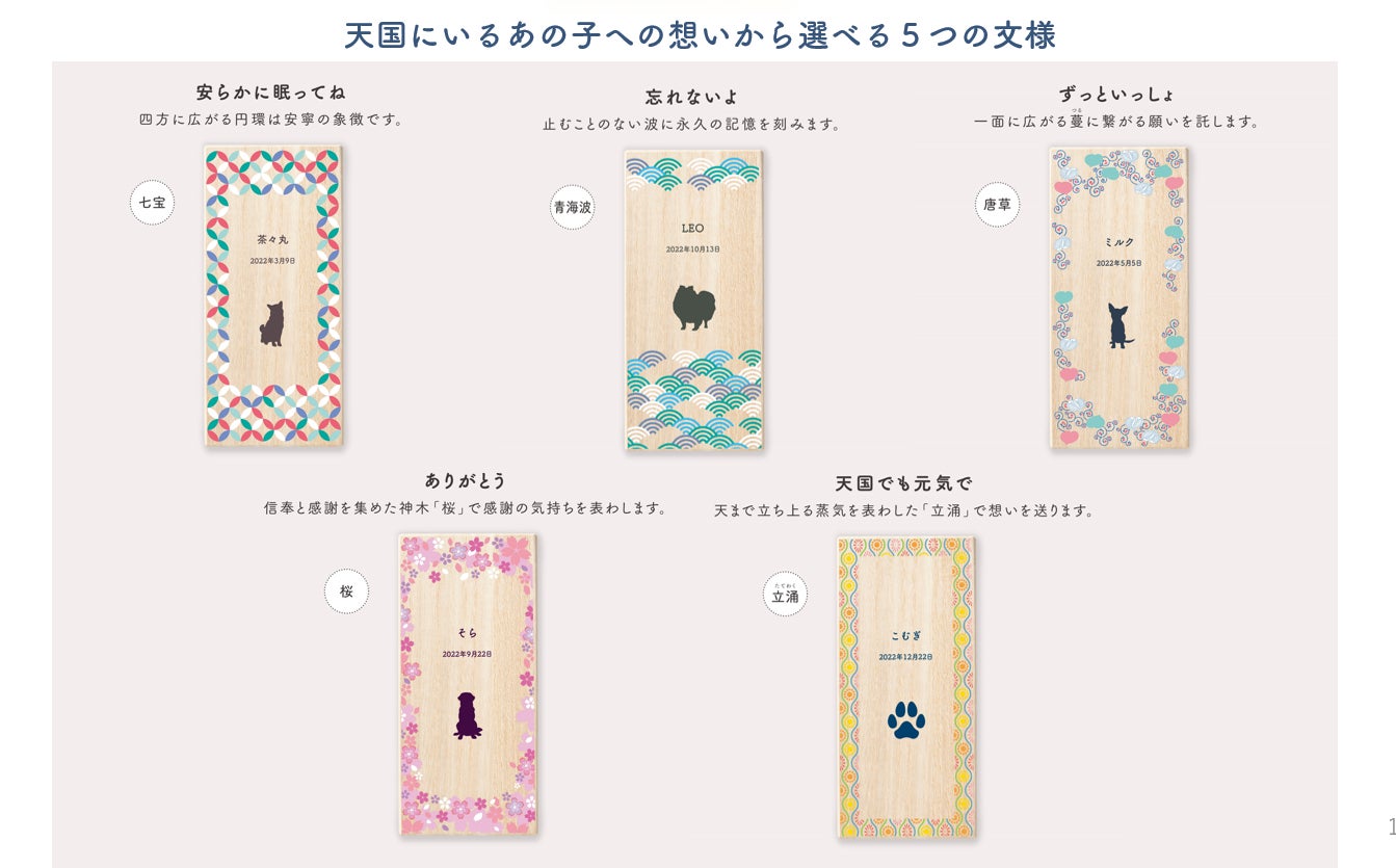 ■文様柄は「想い」に合わせて5種類からお選びください。シルエットもお選びいただけます。