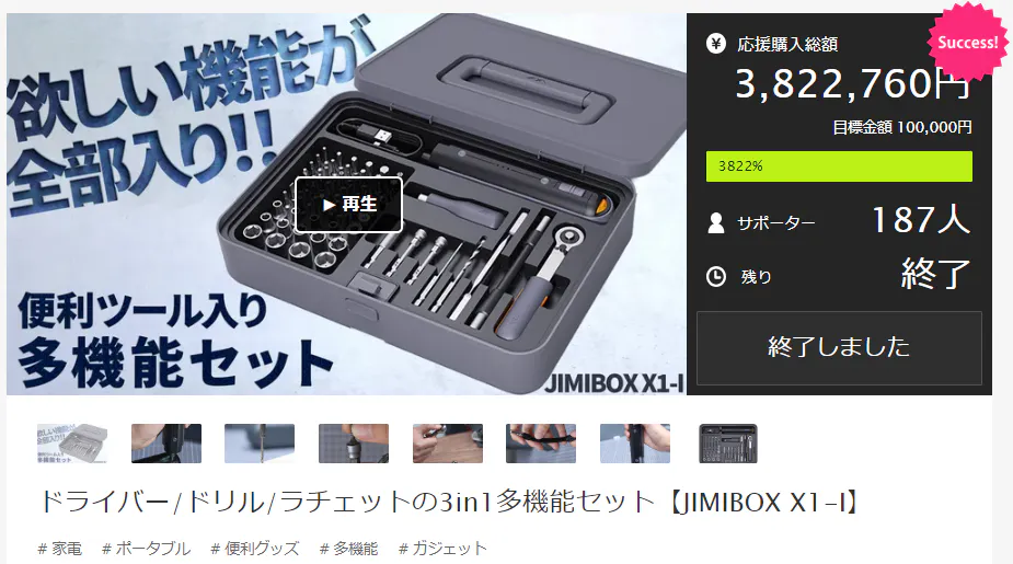※想定を上回る皆様から支援を頂き、量産体制を更に充実させることができた場合、一般販売価格が予定価格を下回る可能性がございます。