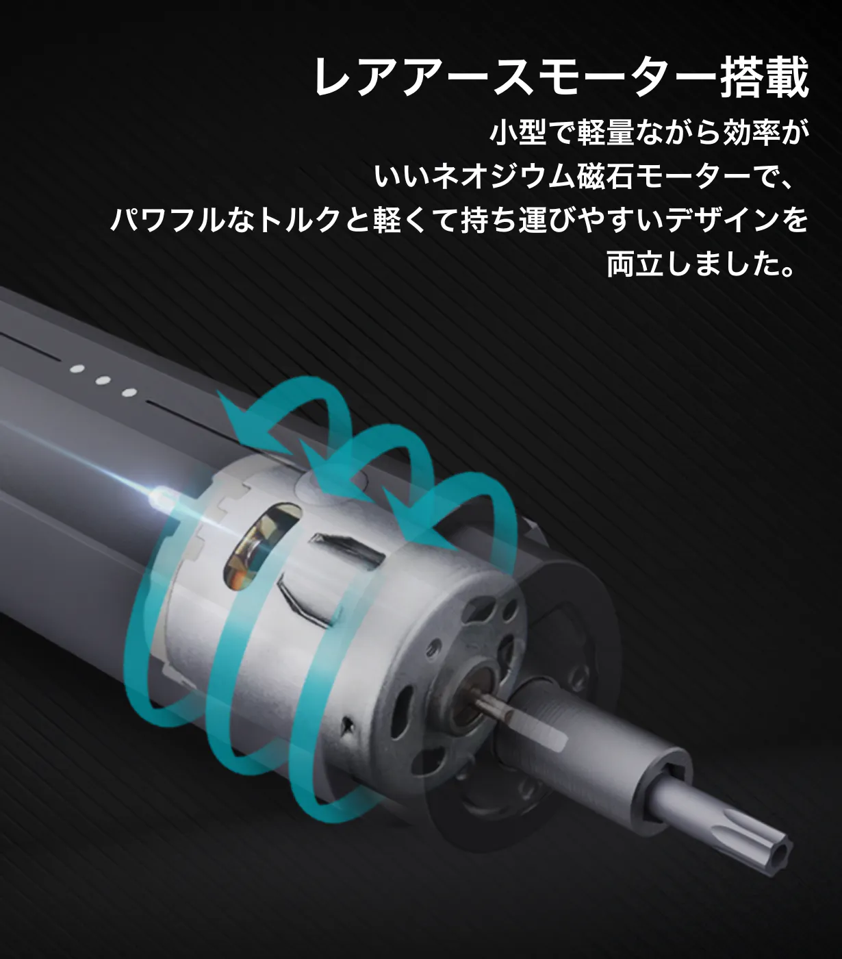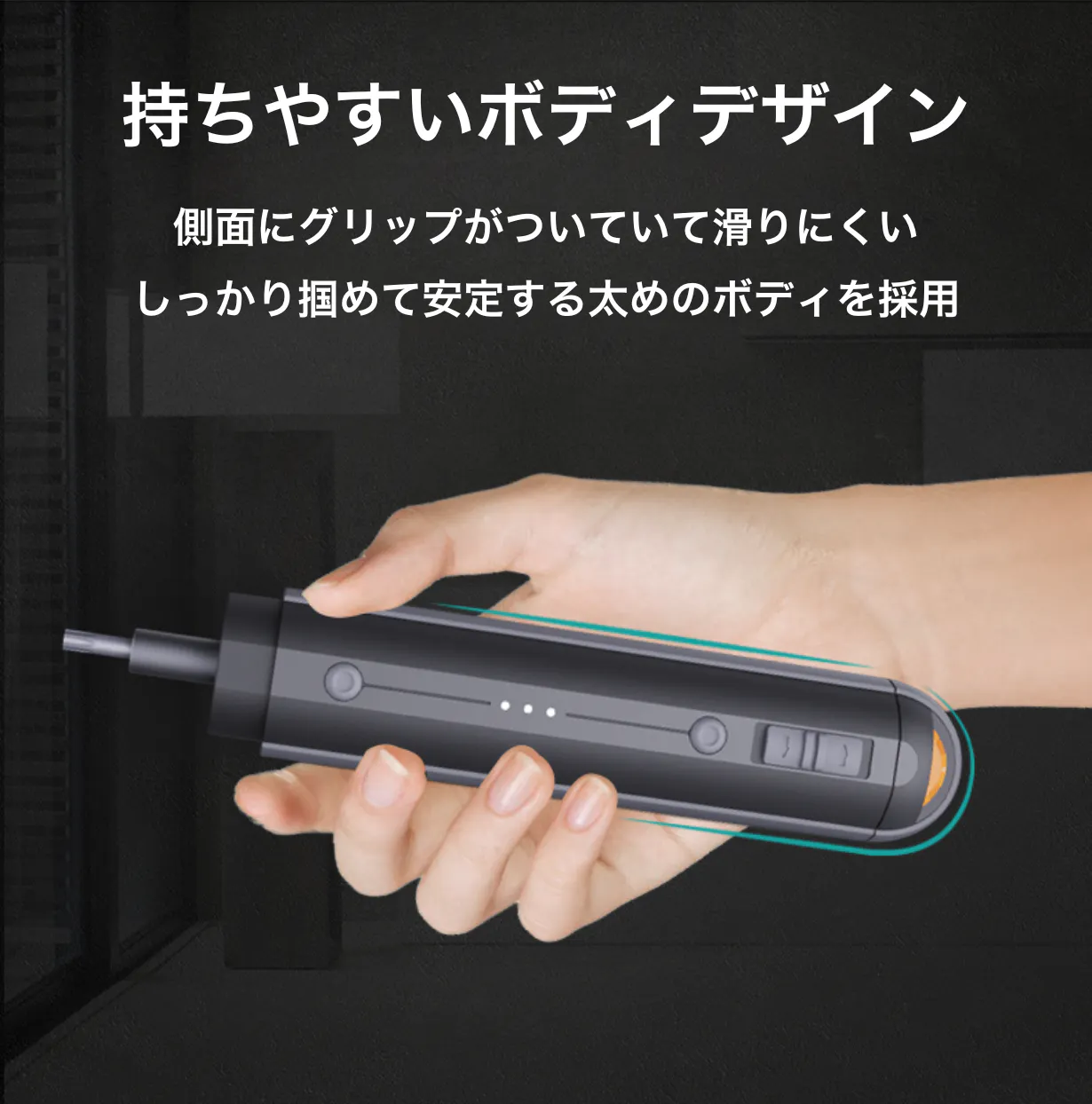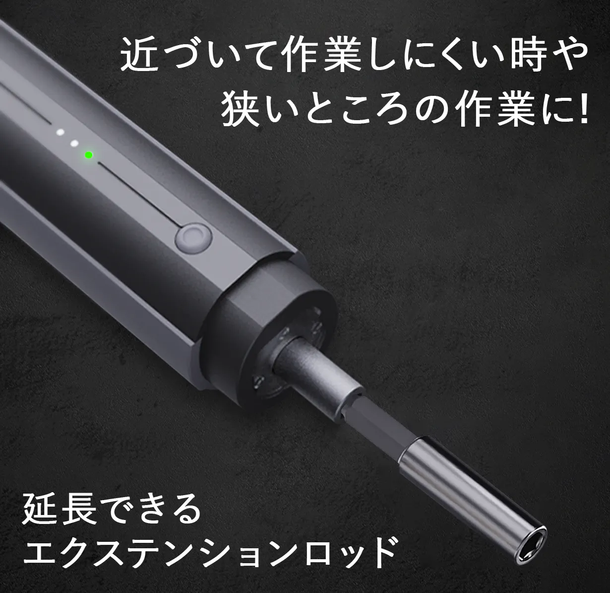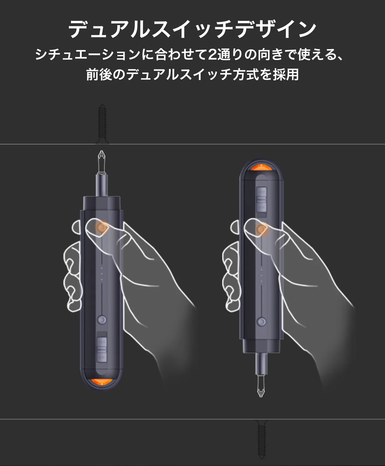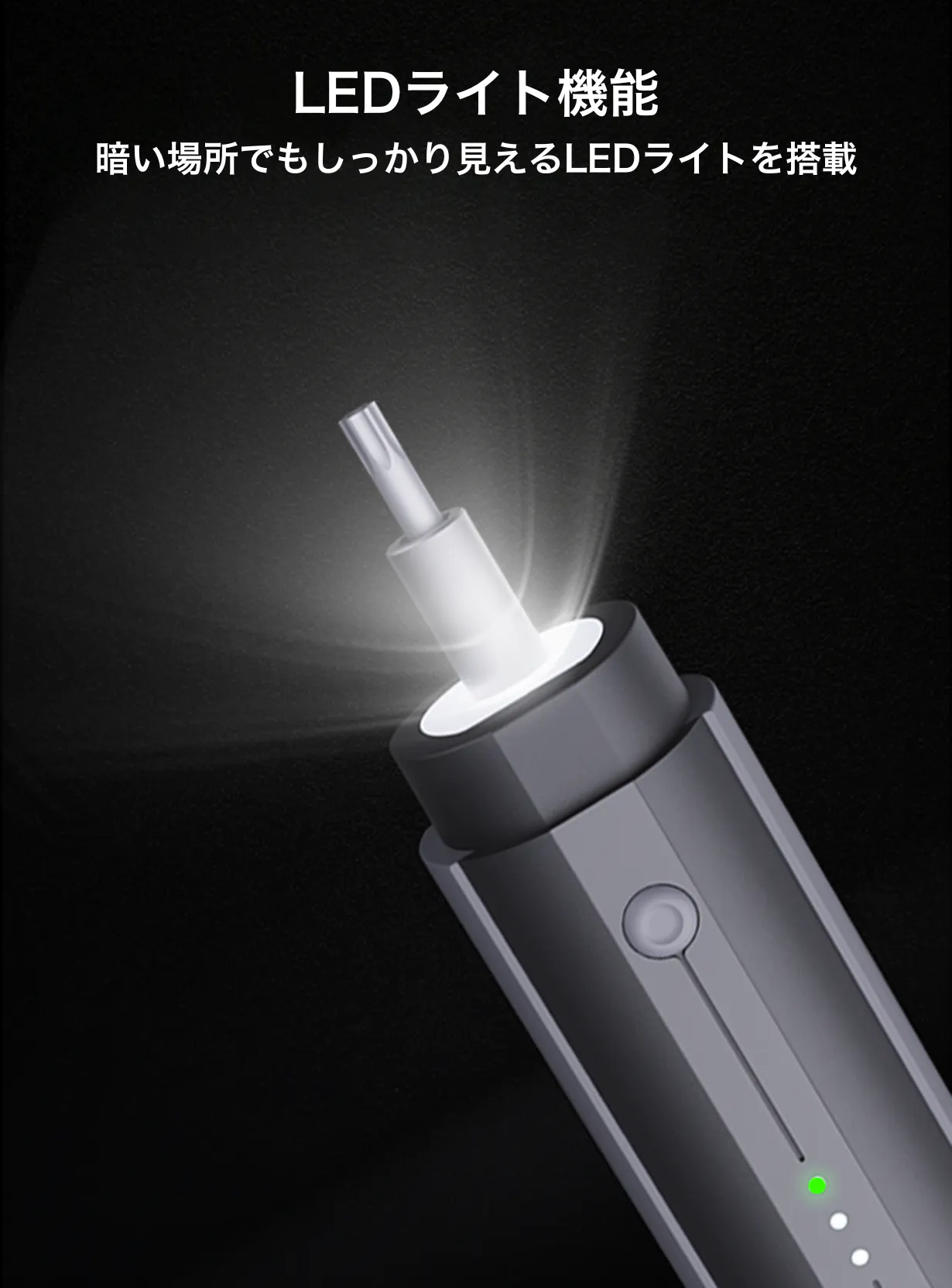 ロック機能と併用すれば、スイッチを押すだけでLEDライト付きの手動ドライバーとして使えます!