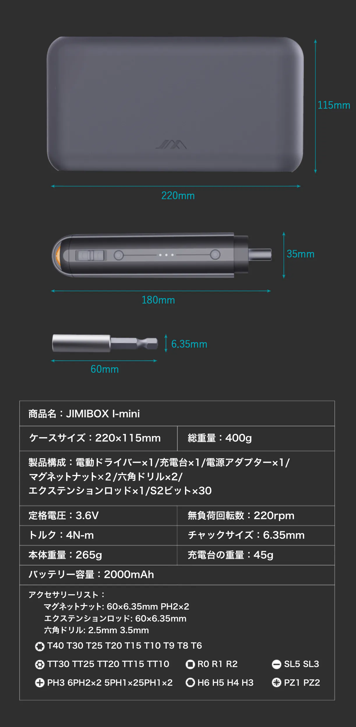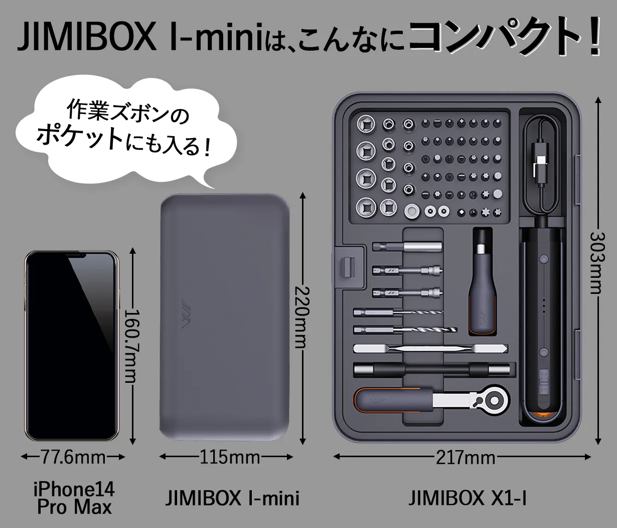 JIMIBOX X1-Iのドライバー、ドリル機能が使えてこんなにコンパクト!