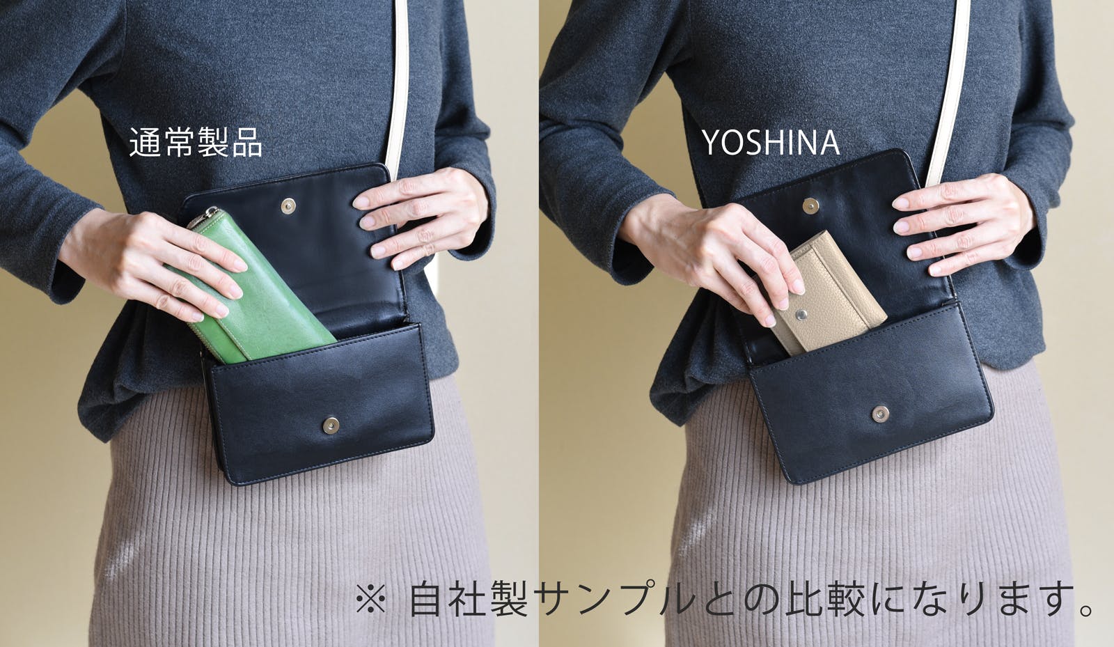 毎日使う財布だからこそ「必要なものを収納できる」「すぐ出し入れできる」「場所をとらない」ことが最低条件だとYOSHINAは考えます。