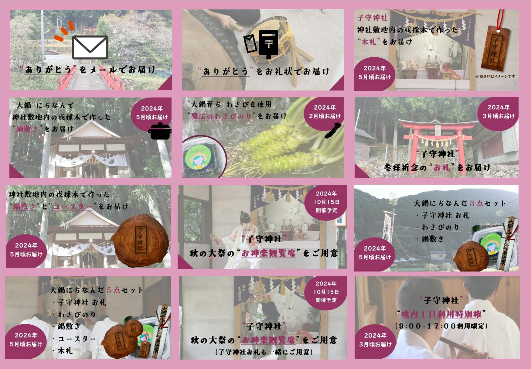 今回のクラウドファンディングのために以下の返礼品をご用意いたしました。