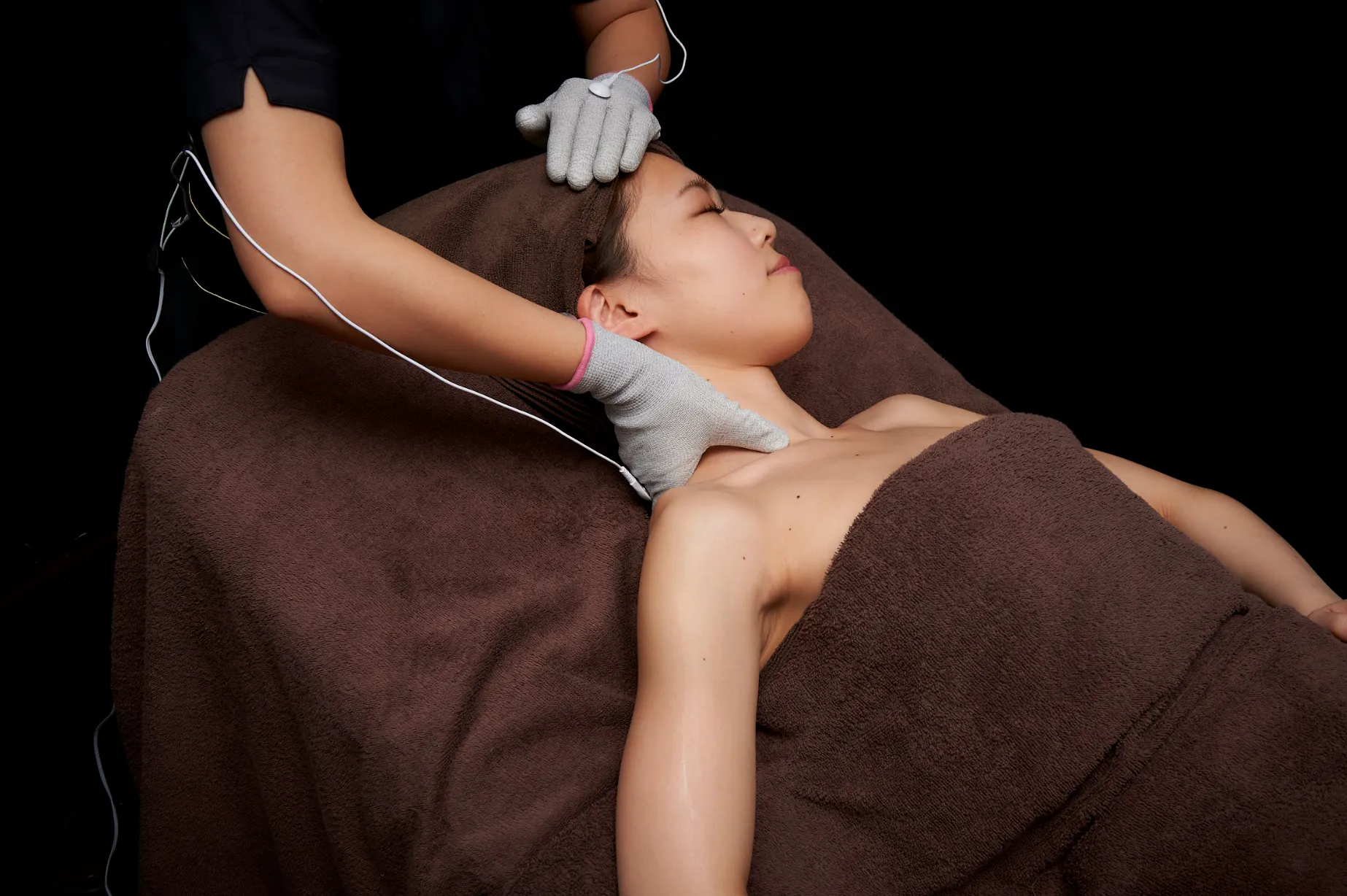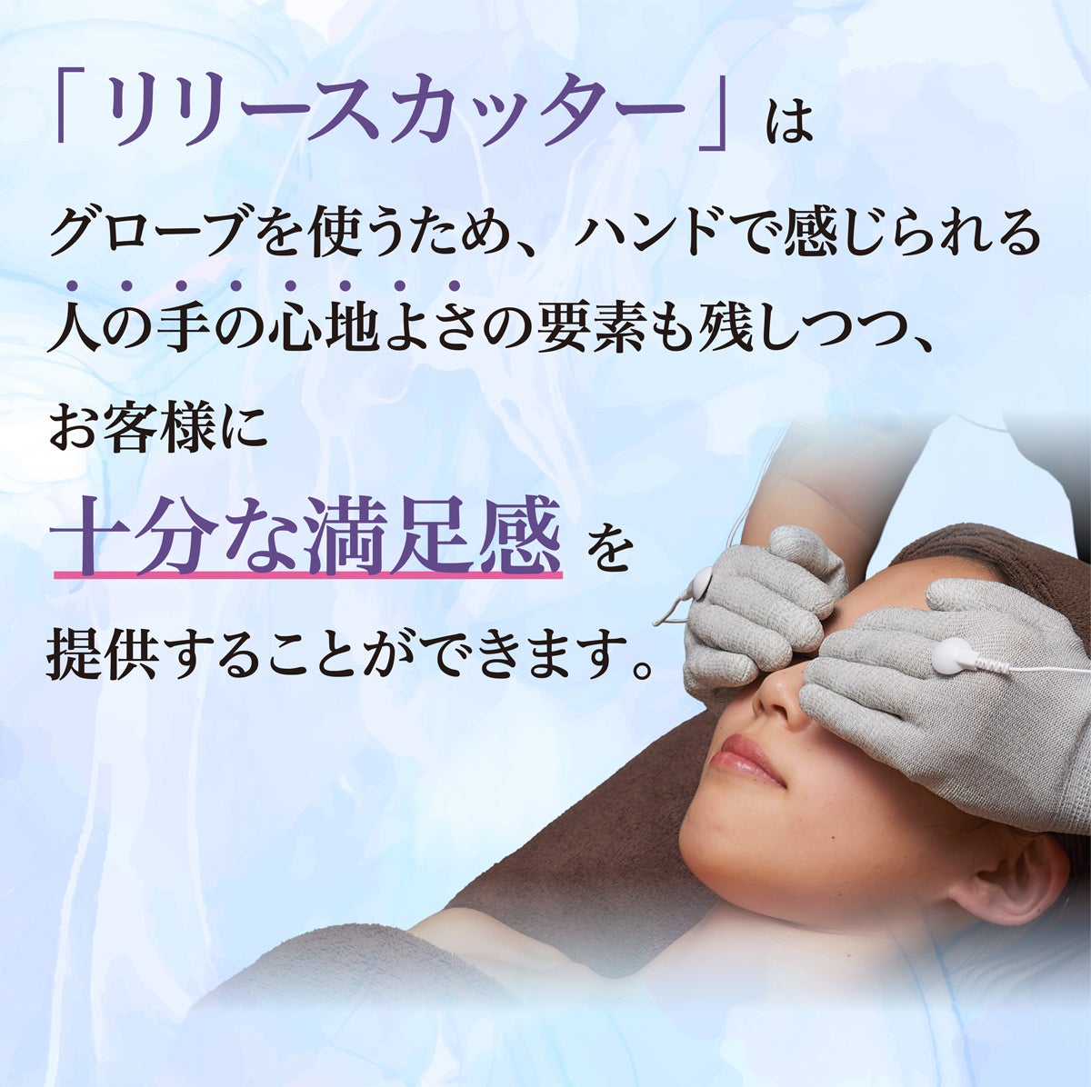 従来の方法では、施術者の技術や筋力に依存してしまうため、部位によって効果が違うこともありましたが、グローブを使って電流を流してあげることにより、