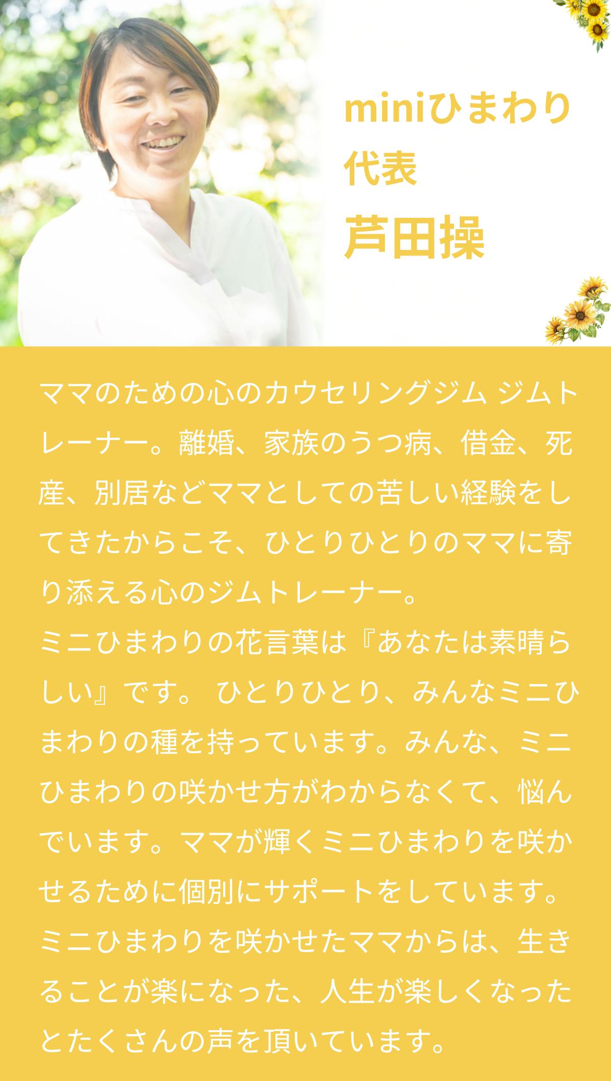 はじめまして。神奈川県茅ヶ崎市で「miniひまわり」の運営と、不登校のママへのカウンセラーをしている「ひまちゃん」こと芦田操と申します。