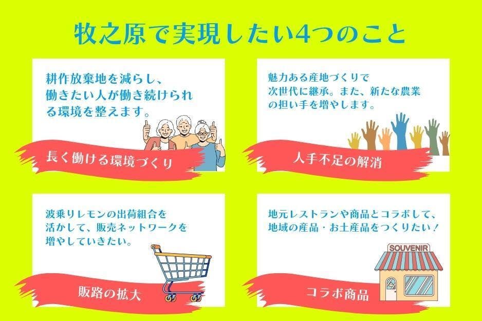 牧之原の新たな名産品としてレモンが加わるように、このプロジェクトを広めていきます。