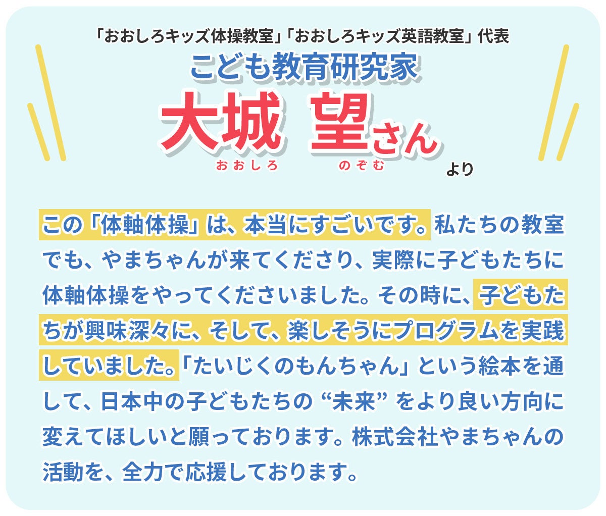 私は、(株)やまちゃんという会社(https://ymcn.co.jp)にて、予防医学に基づいたこどもの健康的な身体づくり事業を現在おこなっております。また、15歳と13歳、2歳、1歳児の4児の父でもあり、日々育児にも精を出しております。