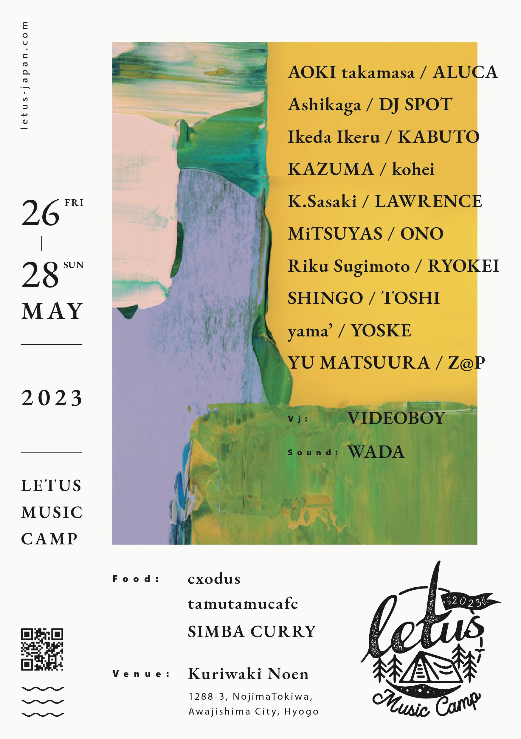 2021年にはLetus Music Campが始動し、兵庫県のグランピング施設で、2022年、23年は淡路島にある農園に国内外の優れたDJたちを招いて3日間に渡りパーティを開催しました。