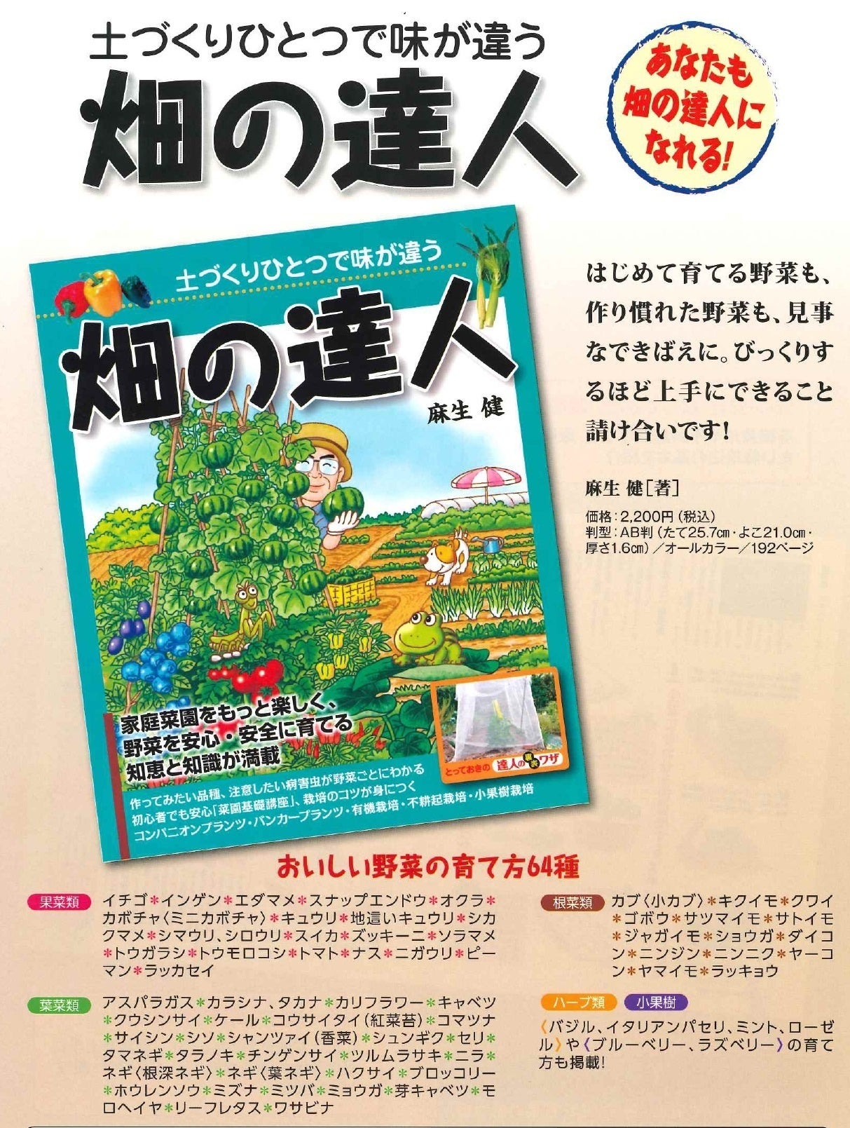既に全国の農業関係者に30万部売れたベストセラーの本。64種の美味しい野菜の育て方。
