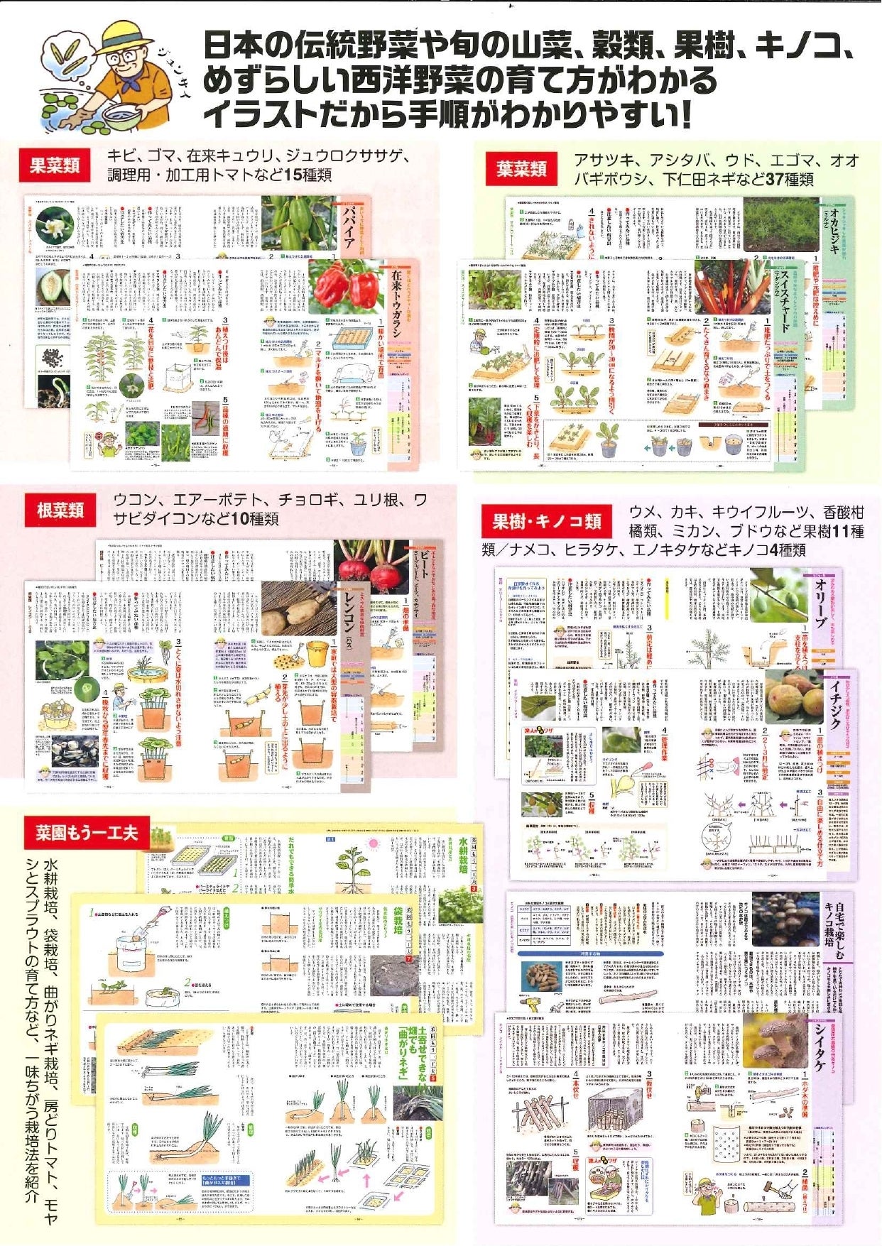 日本の伝統野菜や旬の山菜西洋野菜、穀類、果樹、キノコなど、お店で買うしかなかったあの野菜、山菜が家庭で作れる。ちょっと自慢の作物77種の育て方。