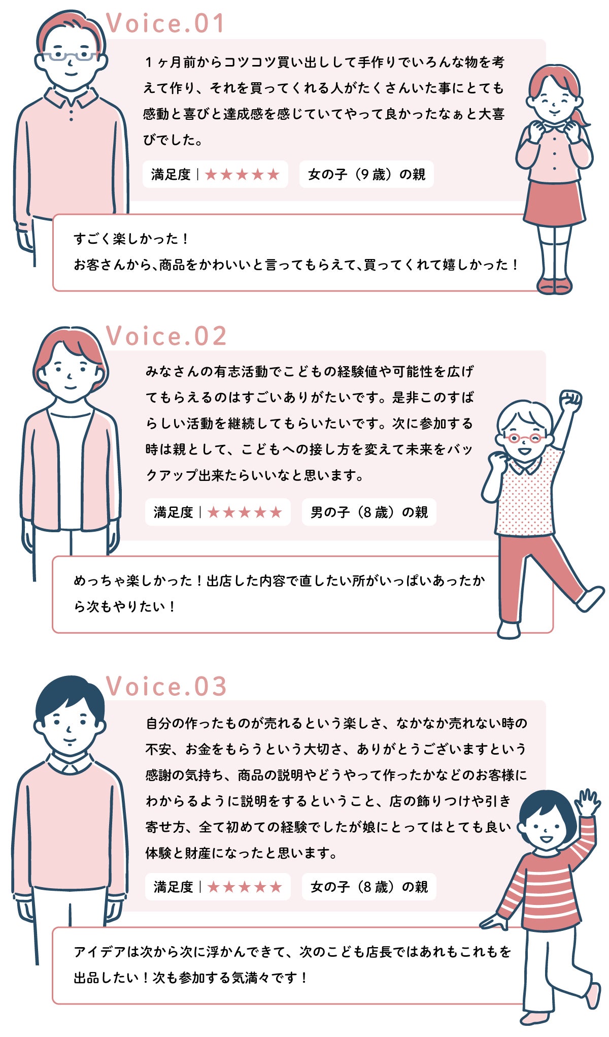 私たちは、こどもたちが実際に商品を用意し、販売する体験を通して商売の基本やお金の価値、社会の仕組みについて学べる場を提供し、地域の活性化も目指しています。