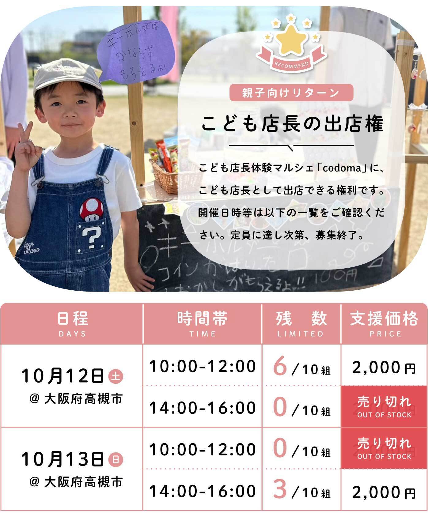 こども店長の出店権はこちらのクラウドファンディングからお申し込みいただけます。