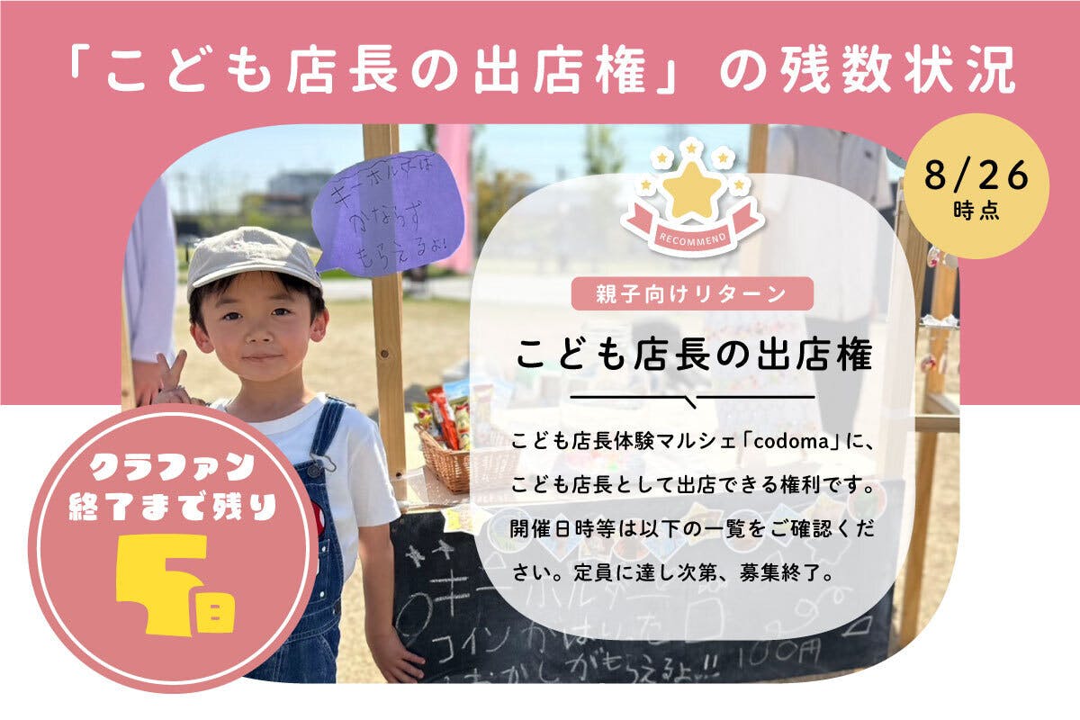 今日は「こども店長の出店権」のリターンの残数についてご案内いたします!