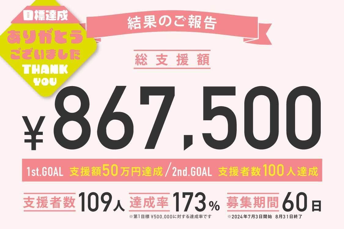 2024年8月31日23:59に、クラファンが終了いたしました!