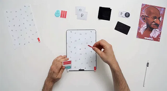 PaperlikeをiPadの上に乗せて、ガイドのアプリケーションステッカーを貼り付ける