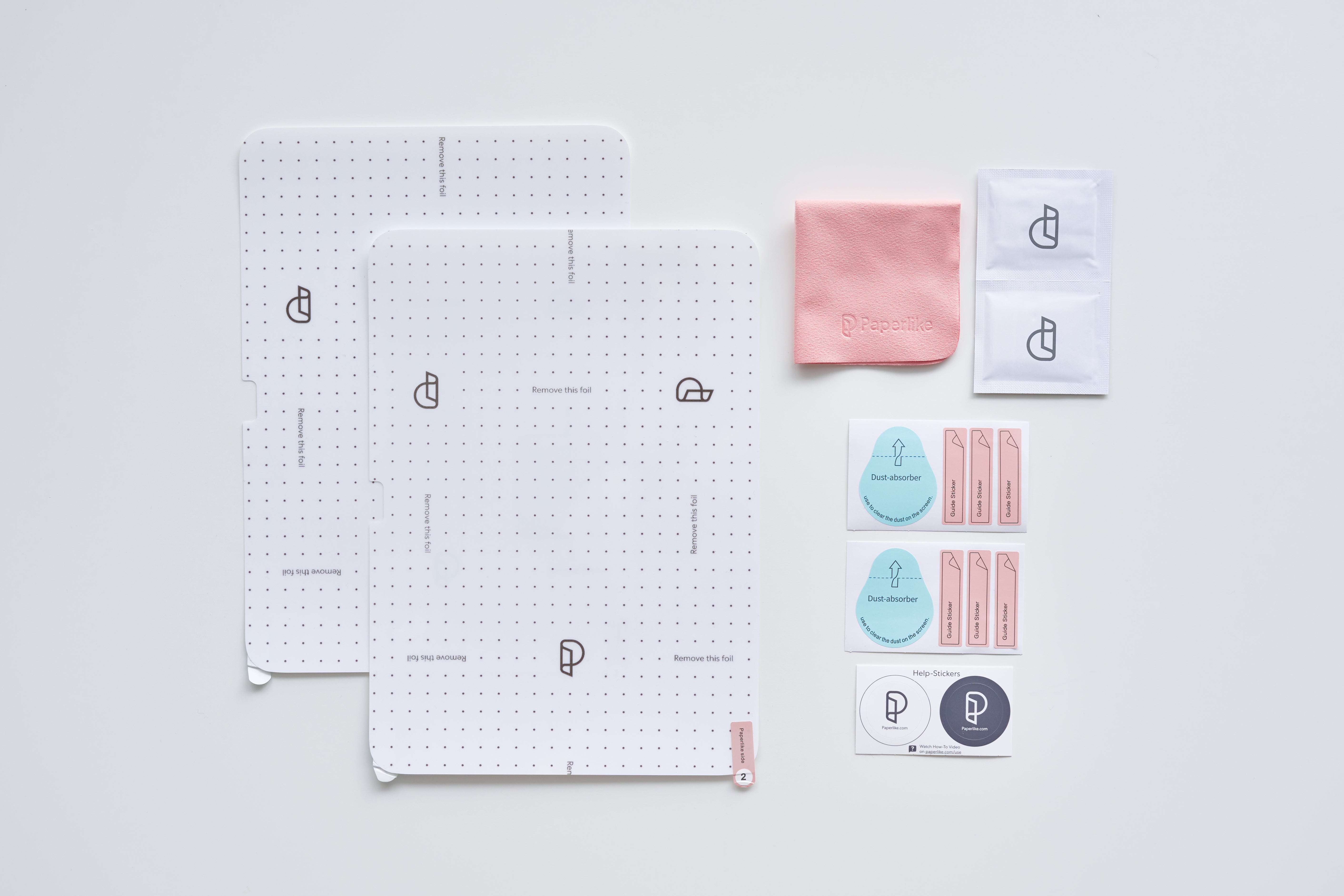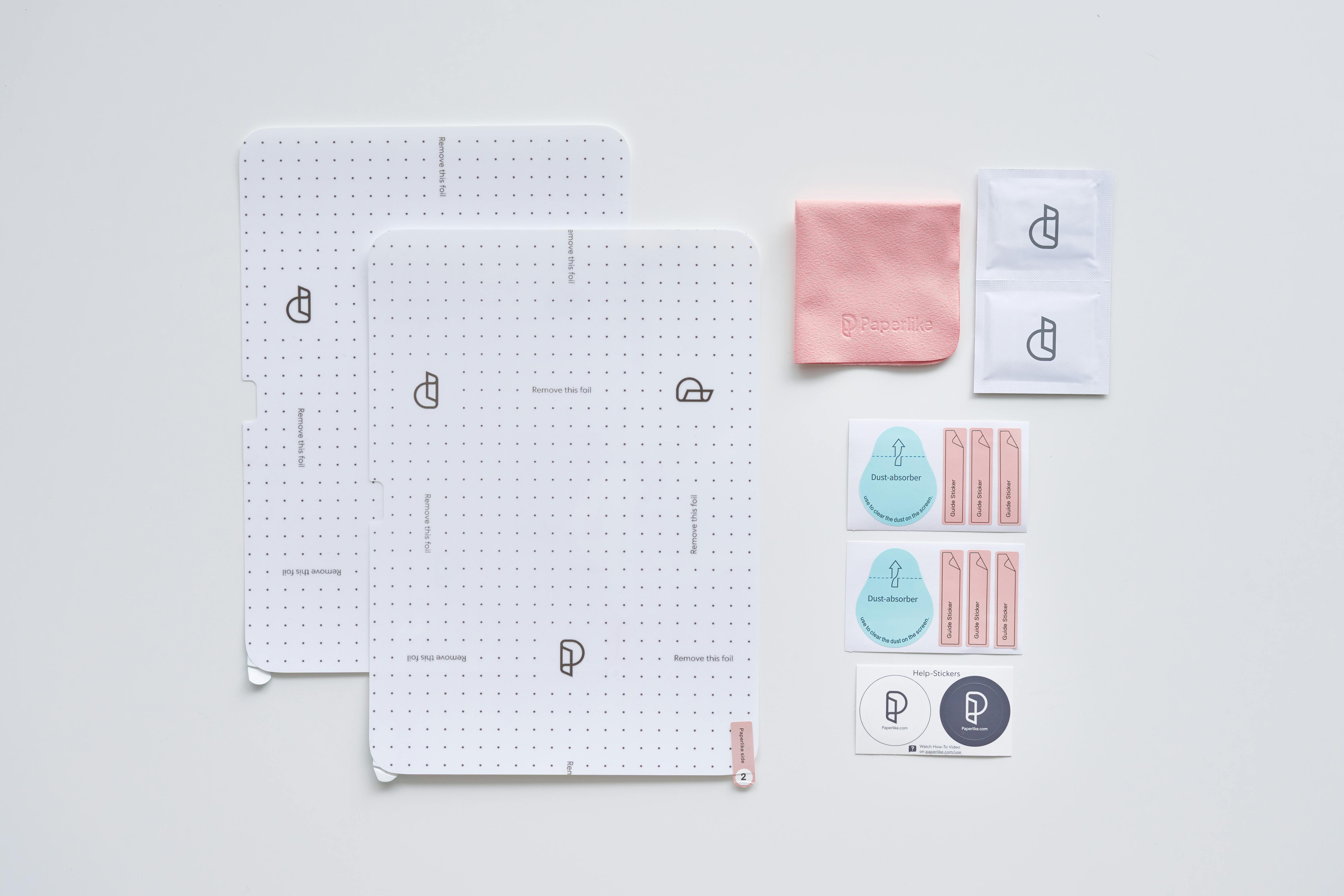 今回は、「Paperlike 2.1」の取り付け方法を詳しく解説します。同梱されているウェットクロス、ドライクロス、ほこり取りシール、アプリケーションステッカーを利用し、パッケージのQRコードから取り付け方法の動画をチェックすれば、だれでも簡単に取り付けることができます。