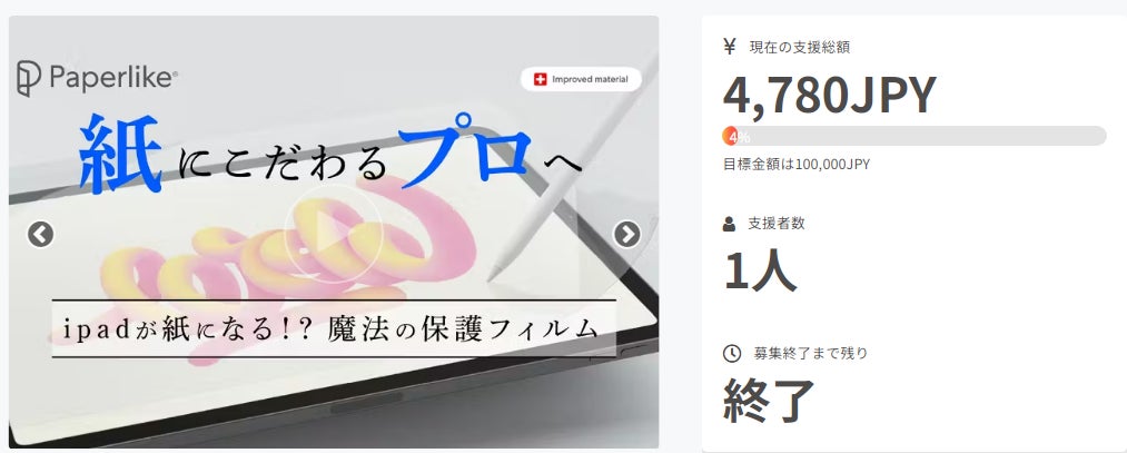ご支援者、Brightチームです。お世話になっております。プロジェクト開始から43日目で1人ものご支援者の方々より支援頂き、無事プロジェクト終了を迎えることが出来ました。早速皆様のリターンを2024年03月末にお届けできるよう準備を始めております!皆様にご満足いただけるリターンをお届けできるよう、全力で取り組んで参りますので引き続き、「Paperlike 2.1 」をよろしくお願い致します。BRIGHTチーム