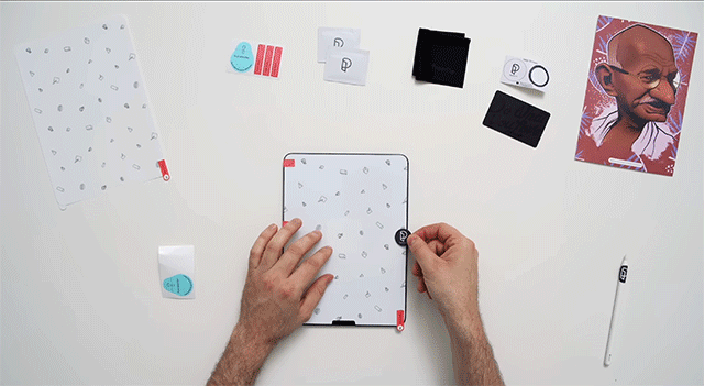 PaperlikeをiPadの上に乗せて、ガイドのアプリケーションステッカーを貼り付ける