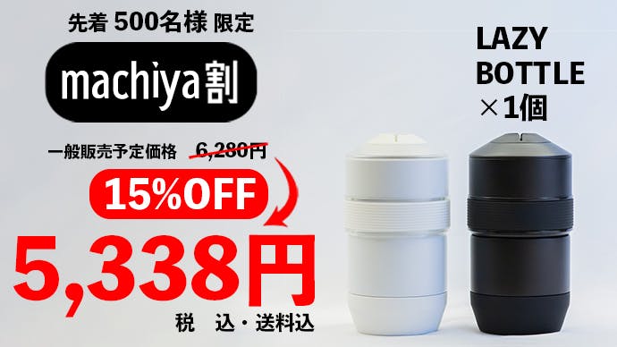 ※お届けするリターン品のLAZY BOTTLEにはオリジナルデザインのLAZY BOTTLEロゴがプリントされた製品をお届けいたします。