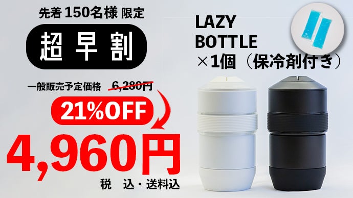 ※お届けするリターン品のLAZY BOTTLEにはオリジナルデザインのLAZY BOTTLEロゴがプリントされた製品をお届けいたします。